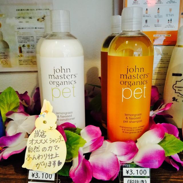 流行に敏感な女性はご存知のジョンマスターのシャンプー。オーガニック&ノンシリコンで高い評価をうけています。そのジョンマスターのペット用シャンプー!とても良い洗い上がりになるのだそうです!!なかなかお取り扱いしているお店が少ないので、是非お試しください★